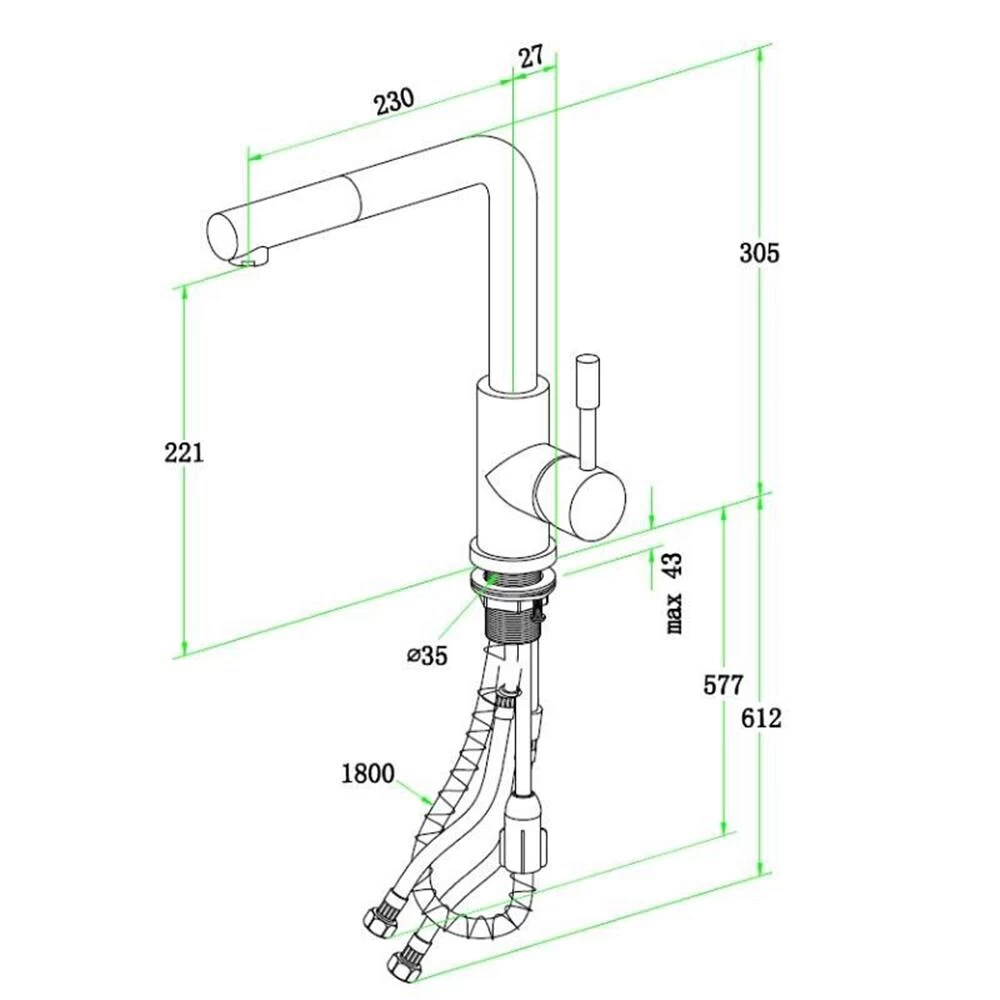 Einhebelmischer mit schwenkbarem Auslauf mit Schlauchbrause.