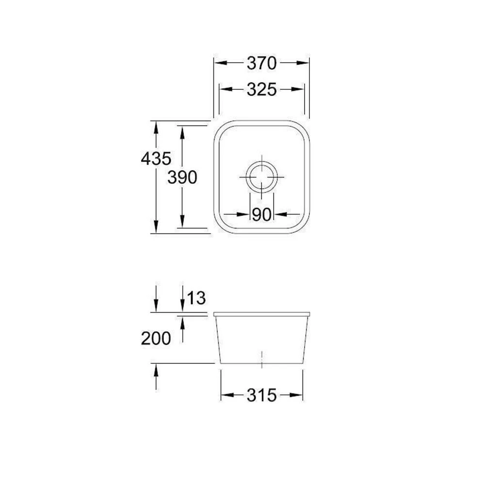 serienmäßig mit CeramicPlus Versiegelung - Spülenmaß: B 370 x T 390 mm