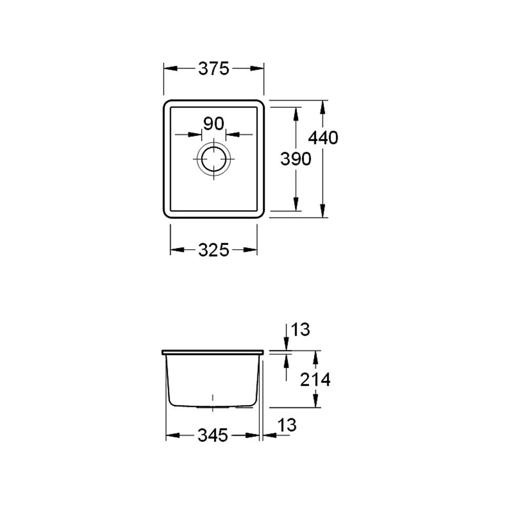 - Beckenabmessung: 325 x 390 mm
